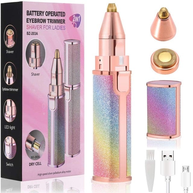 Si vous avez opté pour la seconde option, voici un équipement Épilateur 2 en 1 pour sourcils et poils du visage qui vous satisfera complètement : le mini machine de rasage pour femme.