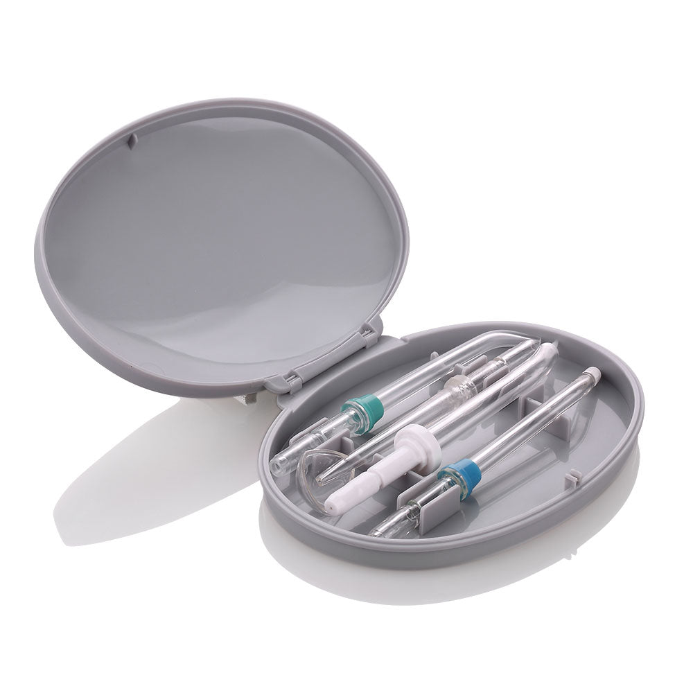 - Grâce aux 6 têtes de cet appareil et un miroir à dents, vous pouvez éliminer les caries, inspecter l’intérieur de votre bouche, etc.