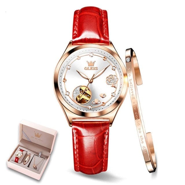 Bracelet- montre mécanique en cuir style tendance pour femmes