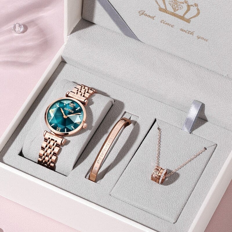 Bel ensemble montre et bijoux pour femme magnifiquement emballer dans un coffret un beau bracelet et un collier. C'est un bon choix comme cadeau- noël-cadeau d'anniversaire pour femme