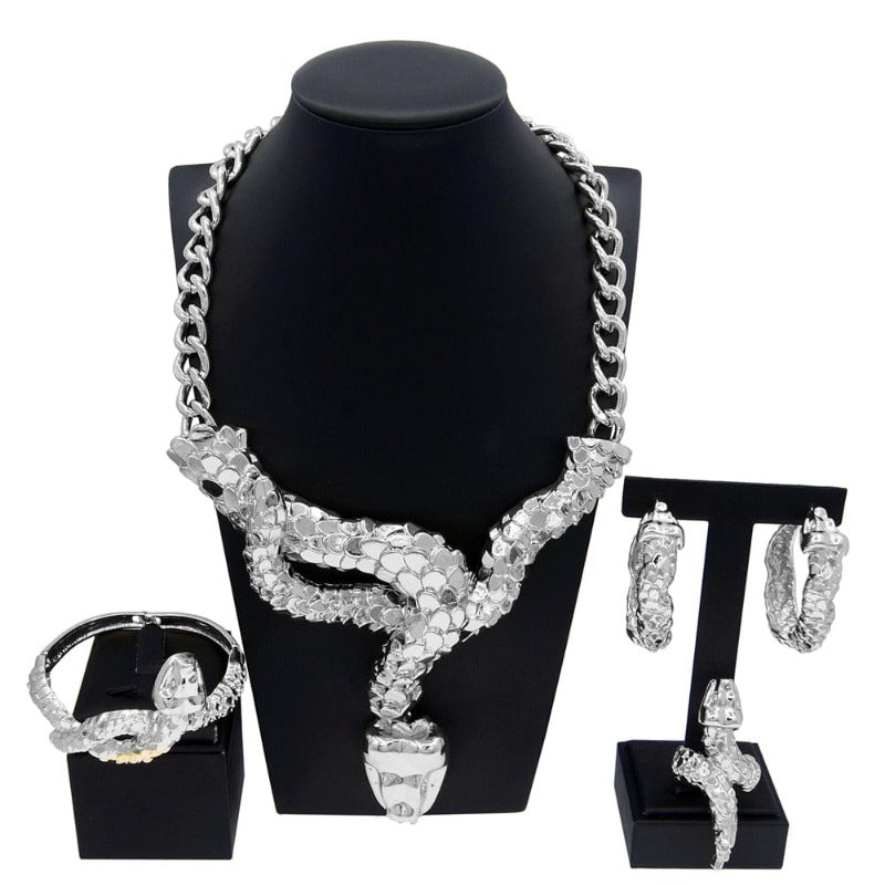 Magnifique ensemble de bijoux Collier, Boucles d'Oreilles, Bague et Grand Bracelet, Pendentifs Corps de Léopard pour Dame . occasions . Originale cadeau pour femme