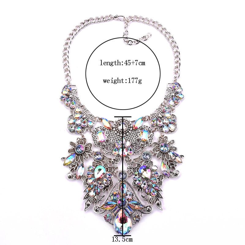 Grand Collier de cristal et de strass en vedette, style luxe et élégant.