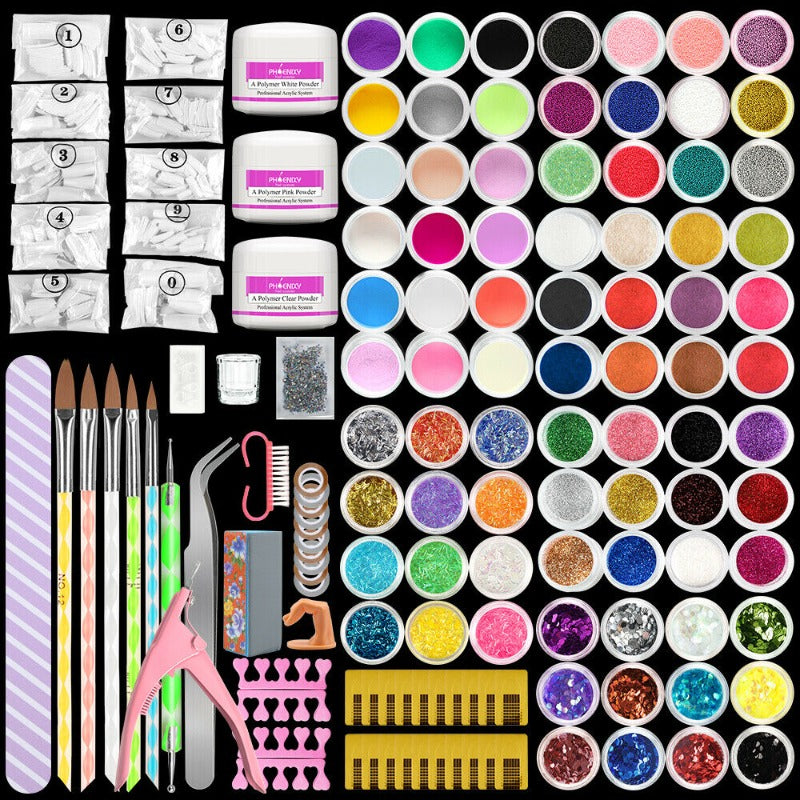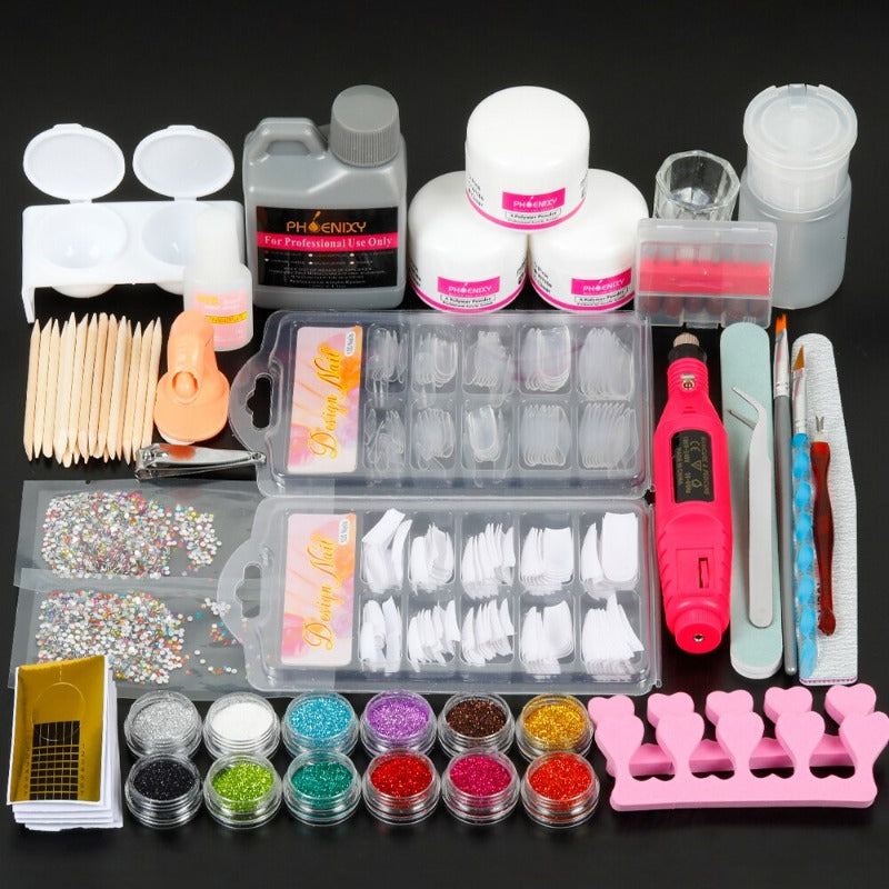 Pack combiné de grande valeur pour tout artiste pour commencer à faire de l'art des ongles en acrylique à la maison ou dans un studio / salon