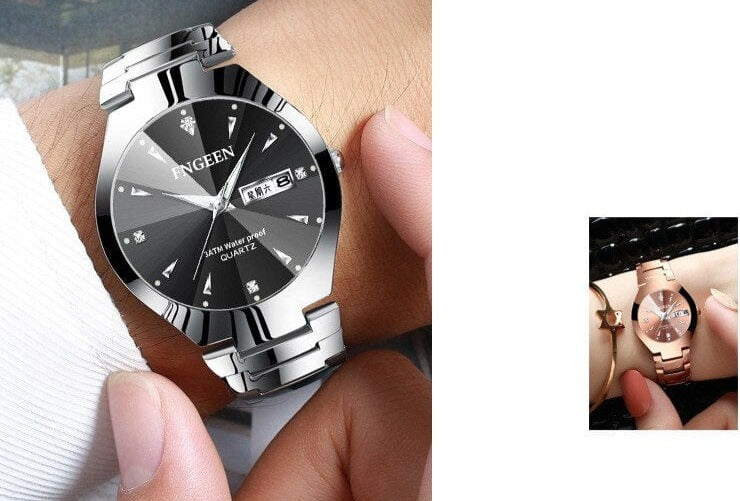 Couple montres pour amoureux montres à Quartz en tungstène acier