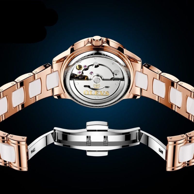 Coffret montre mécaniques élégant Design Chic bracelet en céramique étanche, lumineux pour femmes