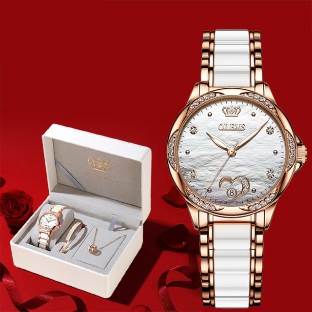 Ensemble cadeau 3 pcs magnifiquement emballer pour femme montre mécanique automatique en céramique