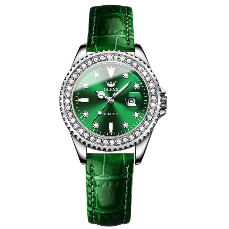 Montre vert à Quartz pour femmes bracelet en cuir vert élégant