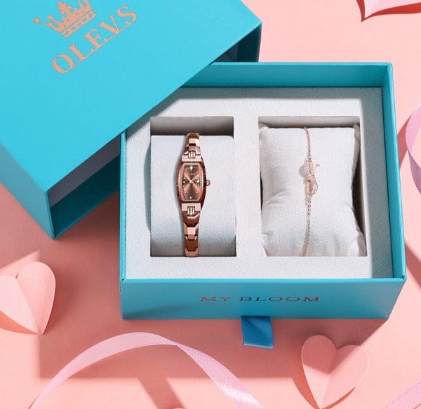conception Unique de montres-bracelets rectangulaires pour femmes, Couleur: or Rose/or.